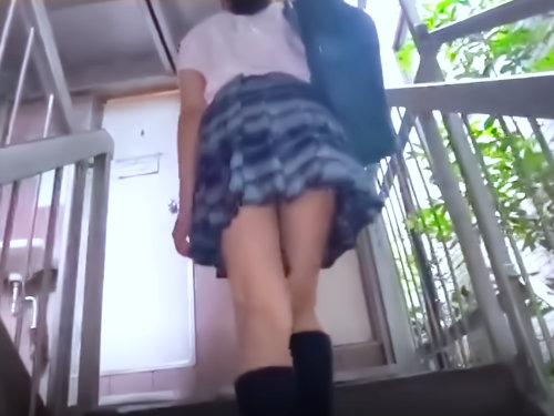 階段下からチラリ!制服天使の思春期パンチラ最高かよwwwwww神すぎる絶対領域!無防備なJKロリのむっちり尻モーレツ♡